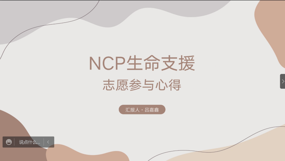 随后,支部邀请了两名疫情防控志愿者分享自己的抗疫故事。支部成员姜佳岑在今年3月份报名了所在小区的关卡口志愿者工作,她说道:“新冠疫情于大多数人而言是写在新闻中的故事与数据。而当真正经历疫情的时候,在零下十几度的天气中那些排队等待核酸检测的居民和医生,那些卡口值守的志愿者以及在背后提供物资支持的商家等等,他们的行动要比故事本身更令人触动。作为在小城经历三次疫情反复的我,不仅对疫情背后的城市运行有了更多的了解,也被所有付出者的精神深深感动。”
