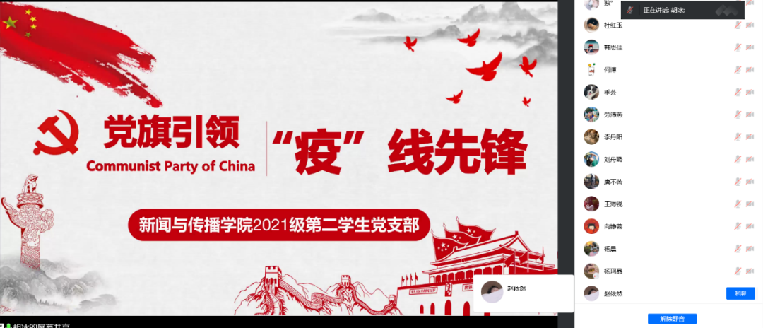 5月11日日晚,2021级第二学生支部的主题党日活动从学习党中央有关疫情防控的重要精神到支部党员参与疫情防控事迹分享,再到学生党员在居家学习期间的心理状态调节,本次党日活动营造了共克时艰的良好氛围,发挥了学生党支部引领作用。