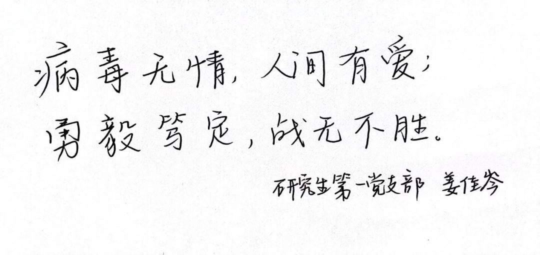 本次党日活动上,支部成员纷纷晒出自己围绕以“抗疫”主题所创作的手写祝福与漫画作品,以自己的方式为抗疫加油,共同祝愿疫情早日结束!