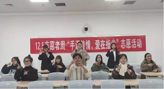 (图为12.5志愿者周“手语传情,爱在指尖”志愿活动)