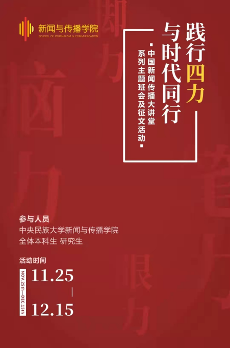 新传学生会始终把增强政治性作为首要任务,引导同学们接受政治教育和价值观的正向熏陶,坚持爱国爱党、爱社会主义的高度统一,服务同学们思想成长。新传学生会认真组织开展“践行四力,与时代同行”中国新闻传播大讲堂系列主题征文比赛,紧扣时代主题,上好《中国新闻传播大讲堂》这门生动的国情大课、有温度的思政大课、高水平的专业大课,全院学生踊跃参与,共收到征文144篇,取得了良好成效。