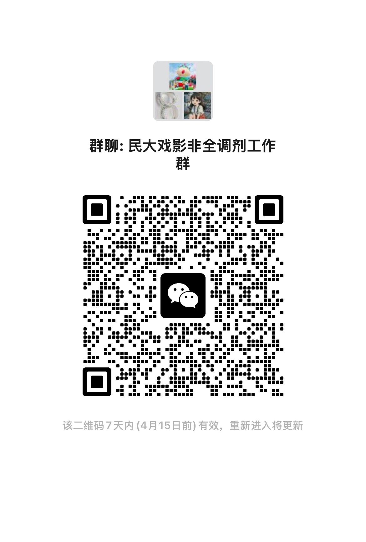 请收到私拍 调剂复试通知的考生于2026年4月9日17:00之前扫描“民大戏影非全调剂工作群”二维码,进群后修改备注为: 姓名+手机号