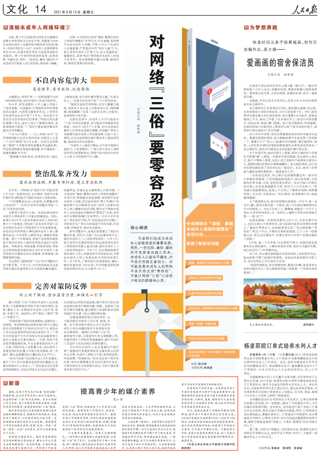 8月13日,《人民日报》刊登我院广告系主任范小青老师《提高青少年的媒介素养》一文。全文如下:暑假,是青少年与电子设备“亲密接触”的高峰期,这让许多家长担心孩子沉迷游戏,或受到网络“三俗”的不良...