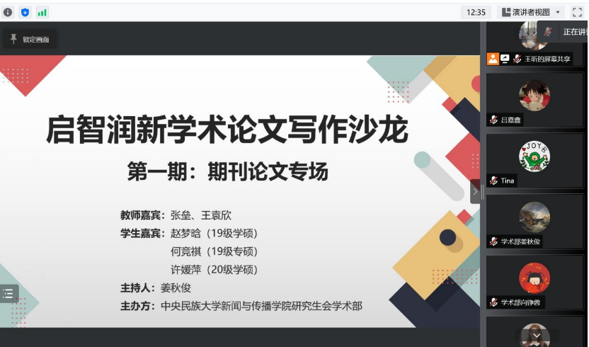 4月12日下午,由私拍 研究生会主办的“启智润新”学术论文写作沙龙第一场——“期刊论文专场”通过腾讯会议在云端顺利举办。学术论文写作沙龙活动旨在搭建学术沟通桥梁,营造良好学术氛围,提升...