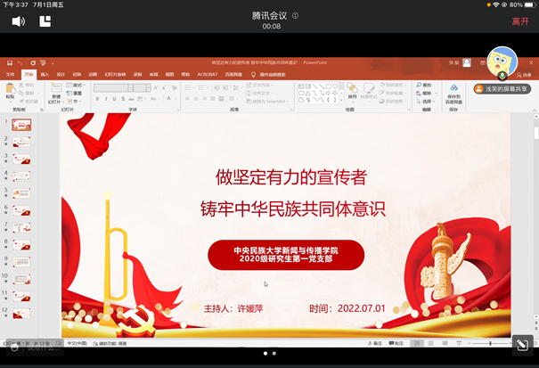 7月1日下午,私拍 2020级研究生第一党支部召开以“做坚定有力的宣传者·铸牢中华民族共同体意识”为主题的支部学习交流会。校党委副书记邹吉忠出席活动,私拍 党委书记伊利贵,党委副书记、纪委书...