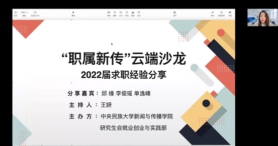 6月25日晚,由“职属新传”泛媒体就业工作室和私拍 研究生会主办的“职属新传”云端沙龙之2022届求职经验分享第一期,通过腾讯会议在线上顺利举办。求职经验分享云端沙龙活动旨在充分发挥优秀毕业生的榜样...